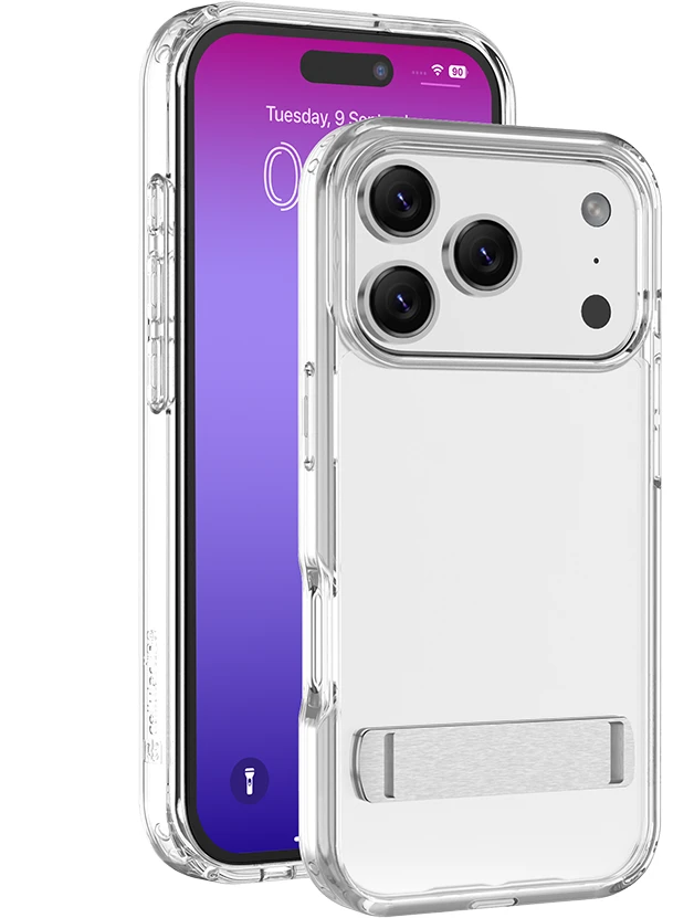 Clear Stand ist die transparente Schutzhülle mit integriertem Standfuß – ideal für freihändiges Telefonieren, Streaming oder Arbeiten. Sie besteht aus einem harten Rücken und stoßdämpfendem Gummirahmen und schützt zuverlässig vor Stößen und Stürzen. Erhöhte Kanten schützen Bildschirm und Kamera. Die antibakterielle Oberfläche und das Anti-Vergilbungs-Material sorgen für dauerhafte Hygiene und Klarheit.